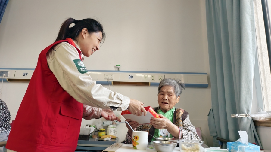 10月28日,浦东供电公司外高桥供服中心胡修齐前往社区卫生中心,给老人送上当地特色的高桥松饼